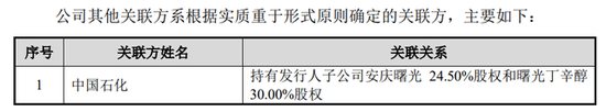招股书还显示,中国石化持有曙光集团子公司安庆曙光 24.50%股权和曙光丁辛醇30%股权。