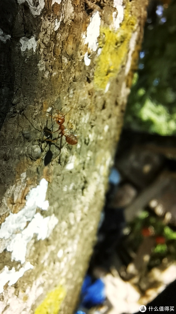 见微知著,阳光照耀下树皮上的小蚂蚁,晶莹通透。